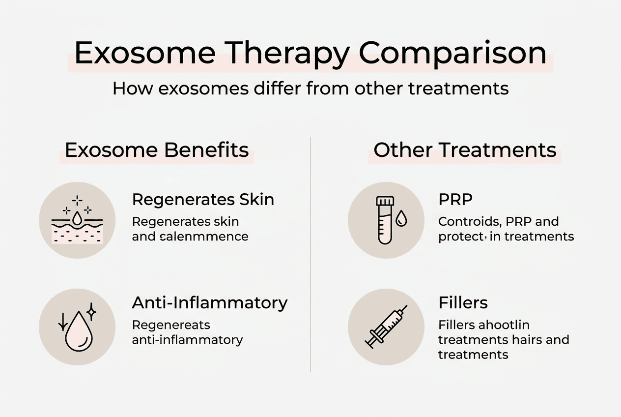 Navigating the landscape of non-surgical anti-ageing options requires understanding how different treatments work and what distinguishes them. Exosome therapy occupies a unique position between traditional topical serums and cellular therapies like platelet-rich plasma.